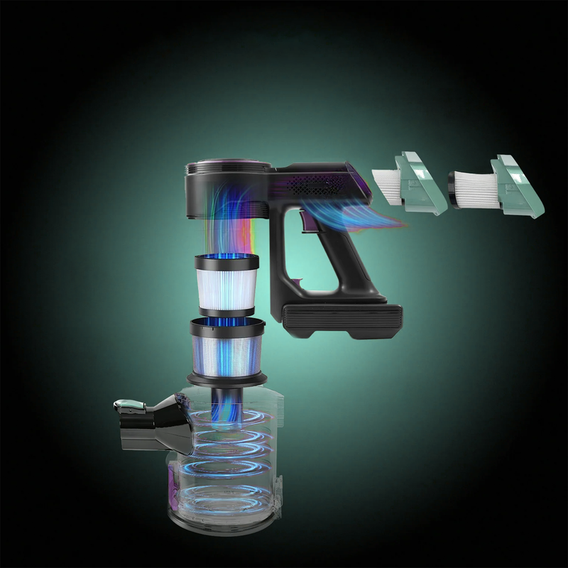 De 5-lagen filtratie verwijdert stof, allergenen en microdeeltjes voor frisse lucht en een gezond thuis.