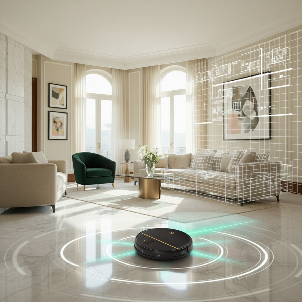 Hij past zich automatisch aan jouw ruimtes aan en werkt stil en zorgvuldig. Jij hoeft niets meer te doen terwijl je vloeren er elke dag als nieuw uitzien.