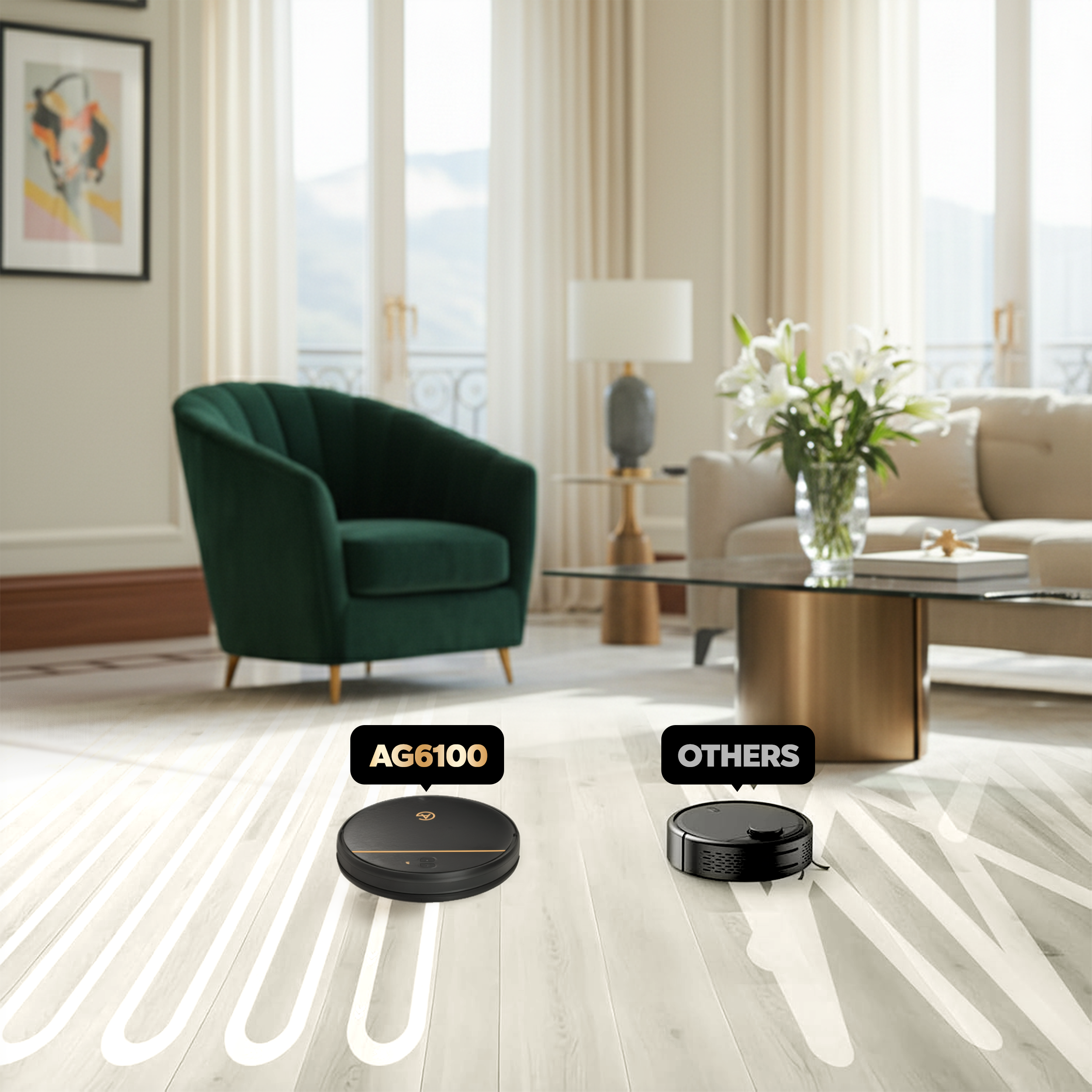 AG Robotstofzuiger met Dweilfunctie - Gold Stripe Design.