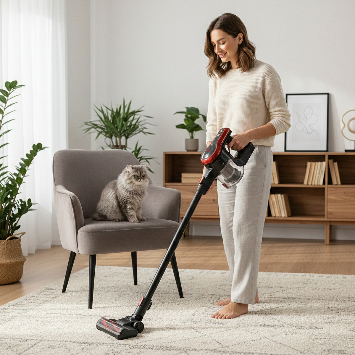 De populairste steelstofzuiger van dit moment: Luxe, kracht en eenvoud komen samen in een licht en draadloos ontwerp dat altijd klaarstaat. Hij glijdt moeiteloos door je huis en maakt elke vloer zichtbaar schoner, zodat jouw thuis fris, verzorgd en rustig aanvoelt. Perfect voor drukke dagen, huisdieren en iedereen die houdt van gemak én een stijlvol interieur.