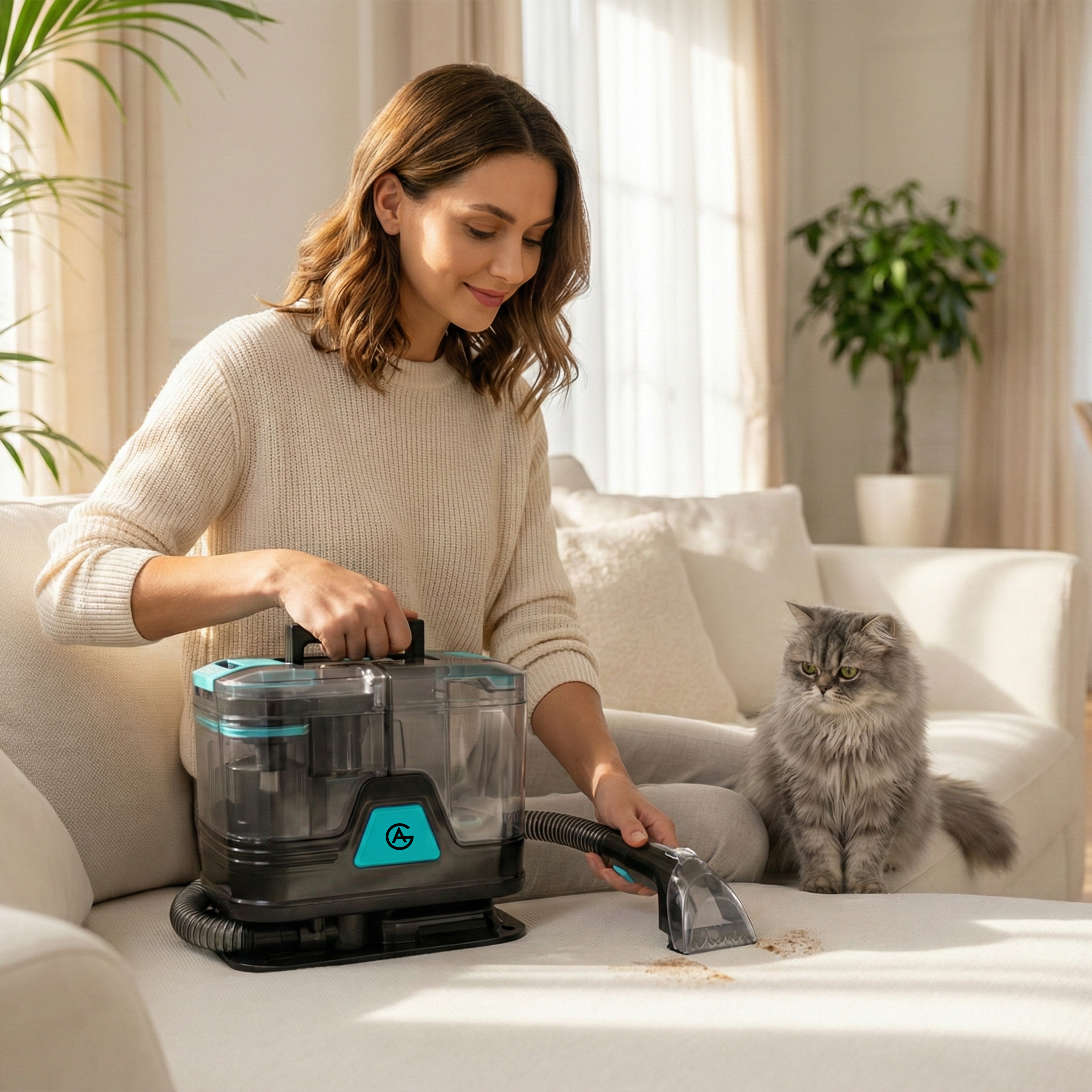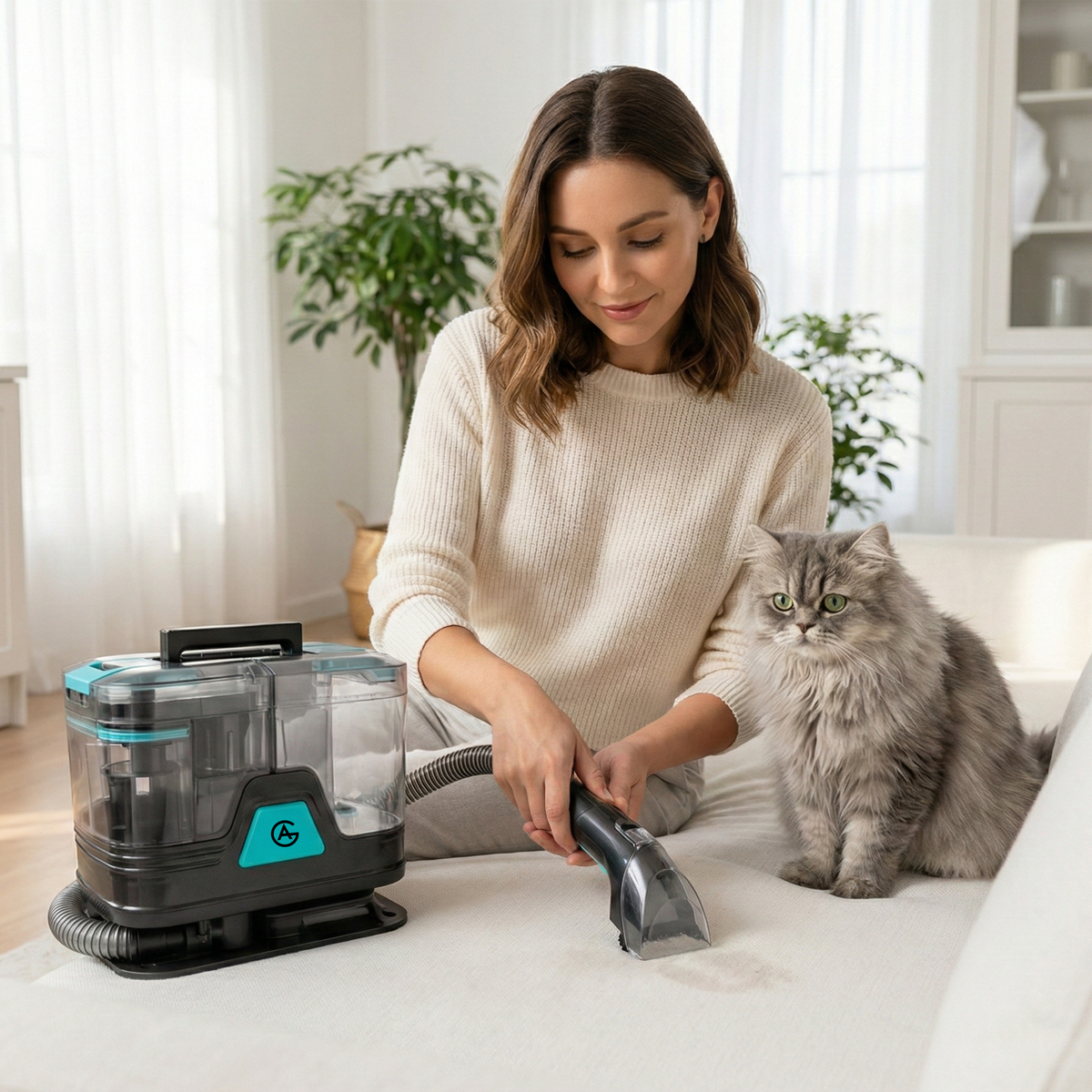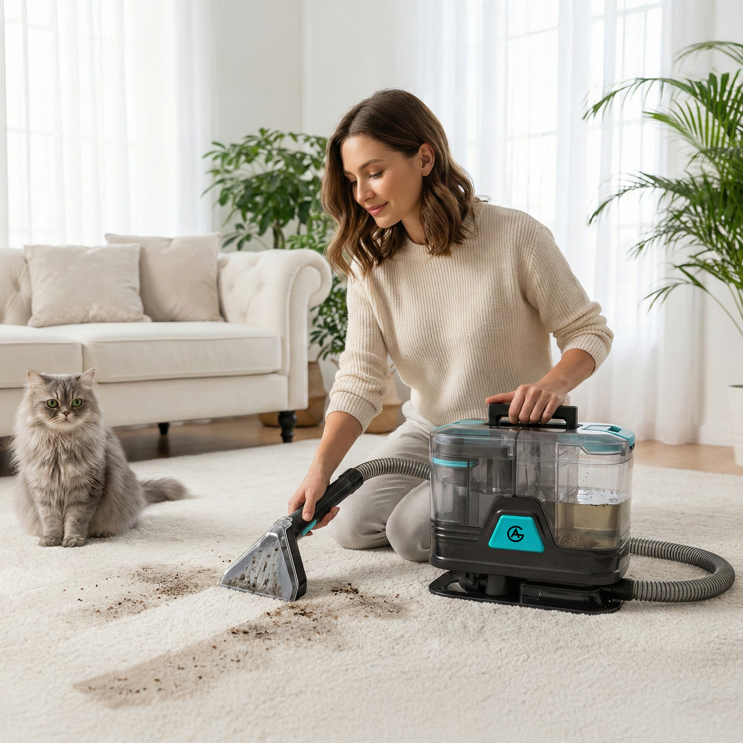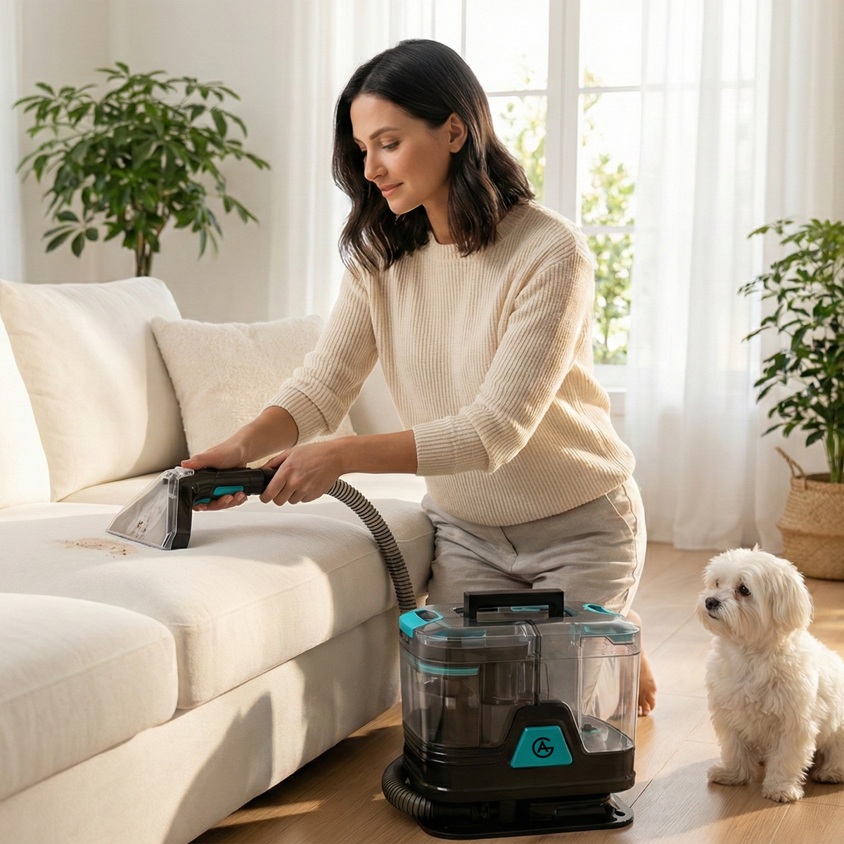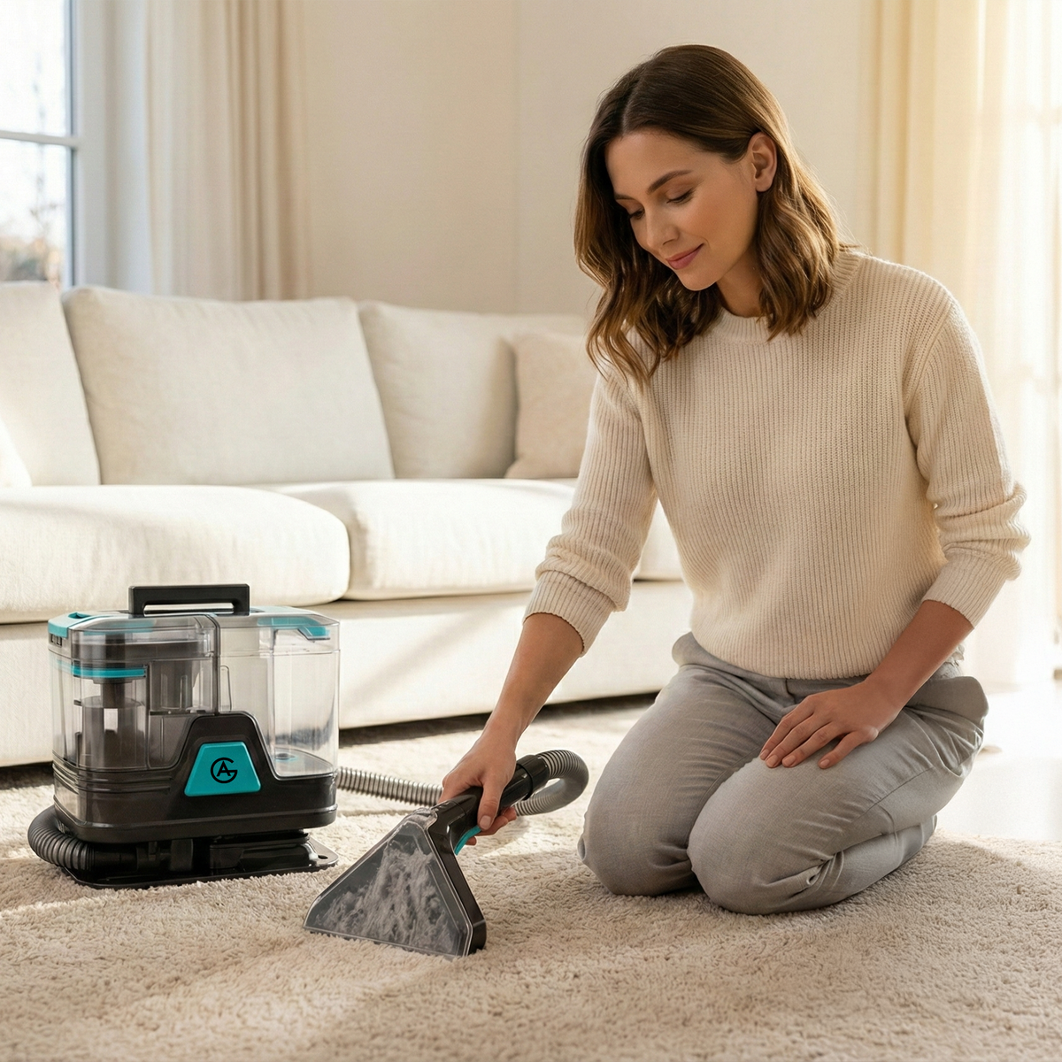 Vlekken in tapijt, bank of stoelen die maar niet verdwijnen? Met de AG Vlekkenreiniger maak je je meubels weer zichtbaar fris en schoon, gewoon bij jou thuis. Geen gedoe met natte doeken of tijdelijke oplossingen en geen dure professionele reiniging. Je pakt vlekken direct aan en ziet meteen resultaat.