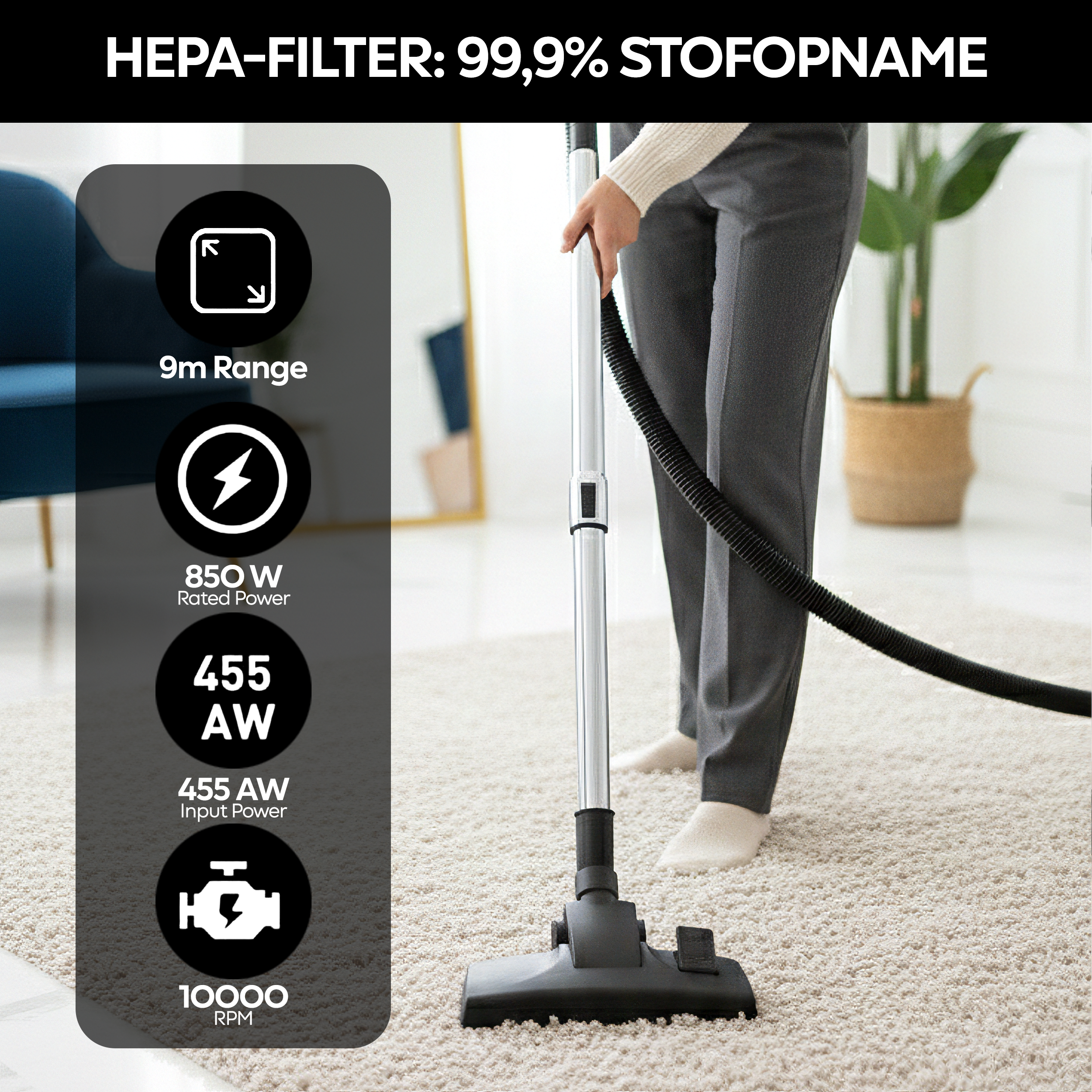 AG Stofzuiger zonder Zak - Extra Lang Snoer, Tot 9 Meter Actieradius - Zwart