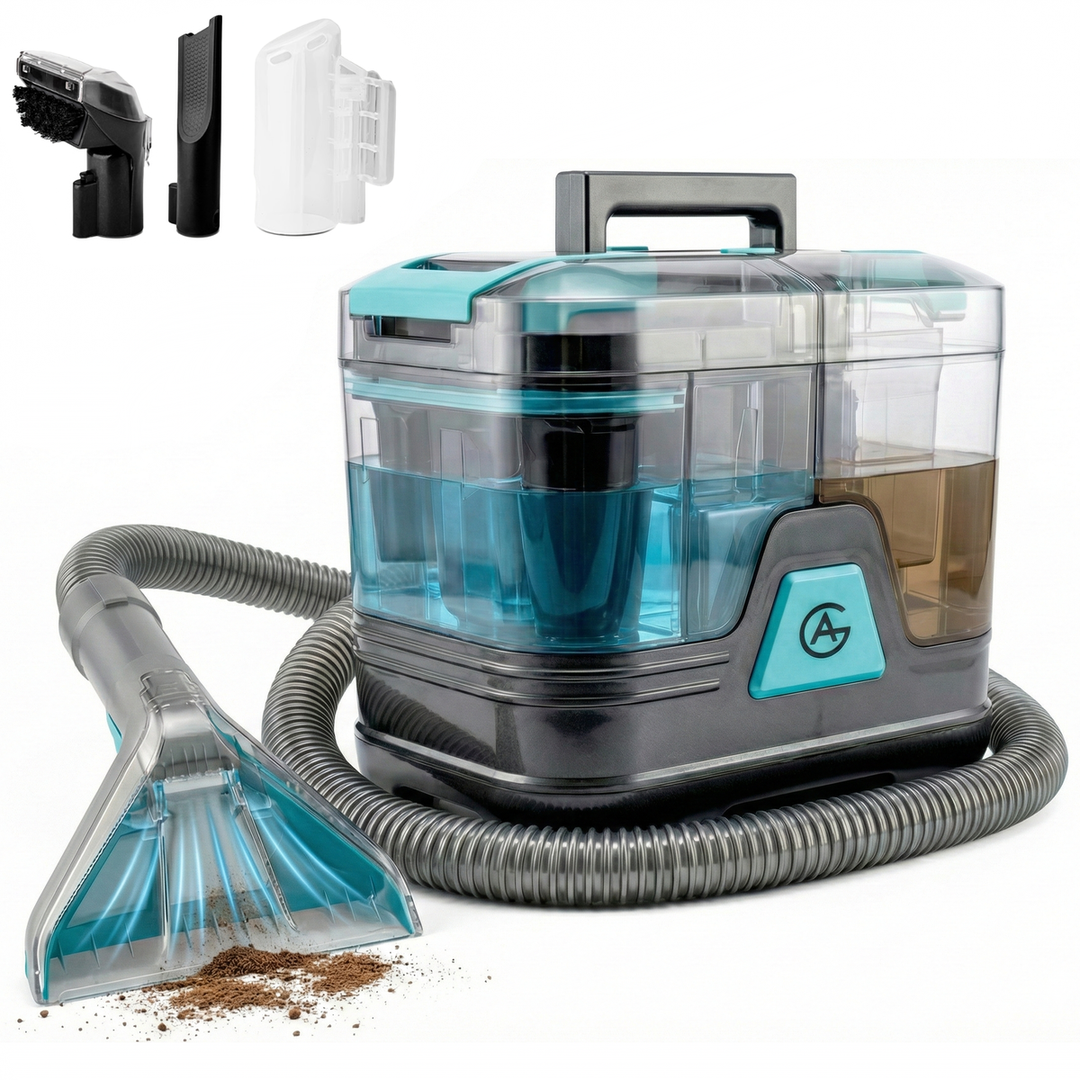 De AG Vlekkenreiniger werkt met krachtige waterextractie. Schoon water wordt diep in de stof gespoten en direct weer opgezogen samen met vuil, vlekken en geurtjes. Wat achterblijft is een fris, schoon en zichtbaar opgefrist oppervlak.