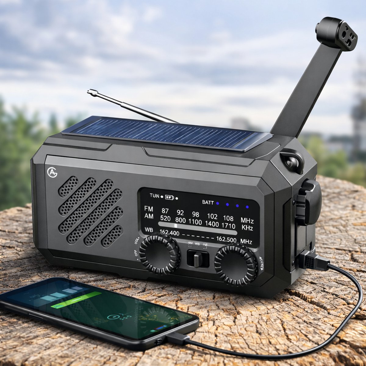 Noodradio Solar Opwindbaar en Batterij - 3 in 1 radio